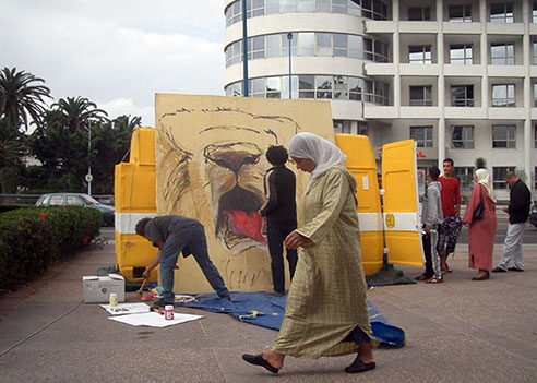 In may 2005, for the Passerelle artistique IV , The lion is dying ‘s van move for another place : the Hermitage Park, making as well a footbridge, physical and symbollic at the same time, between two sensitive areas of Casablanca. This sliding from a place in a way of a revival to another, in decline, is trying, inside of the same process and using different artistic mediums, to interrogate our way of looking to the realities of the contemporary world and the capacity to operate for change.