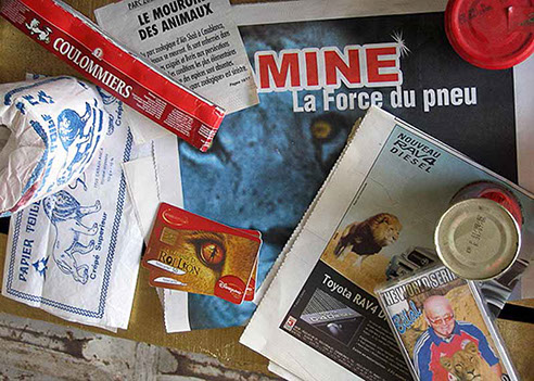 The lion is dying is born in 2003, during a not expected visit to the Casablanca’s zoo of Aïn Sebâa, where we discovered the extent of a disaster, certainly not a new-born one, but already carrying the stigmata of a well anchored renouncement. At this time, La source dui Lion is already working on a not less catastrophic area of the town, the Hermitage Park. The idea of a project is entering then in a germination phase and a very first series of reconnaissance is done. Very fast and driven by the circumstances, the project was orientated on a main axe, symbolically represented by 6 lions of the zoo, incarcerated into 3 cages, about 10 m of diameter each… a dreamed occasion for interminable round tours. Two complementary approaches will be conducted, two parallel « collections » will be set up. The one, « the lion’s collection » is collecting series of diverse objects, all about the lion – photographies, songs, little figures, plays, consumption products… The other one, « the lion’s diary » is realised with the complicity of about 30 persons, volontary engaged to stay alone with the lions of the zoo, an hour everybody, and after that experience, to leave a memory about it: a text, a picture, an illustration, a movie…