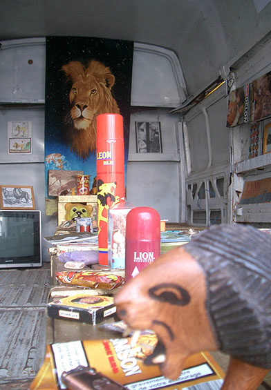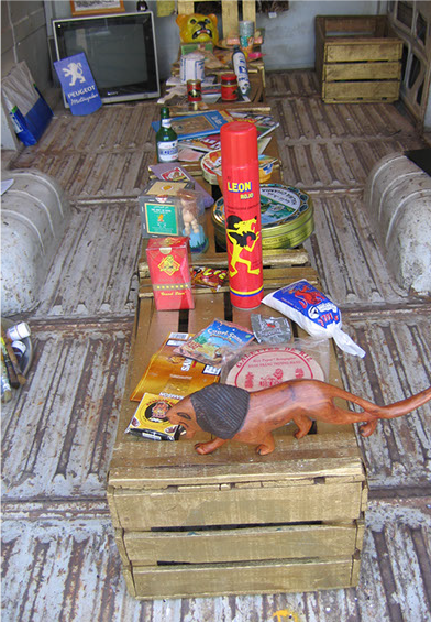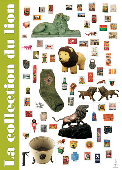 « La collection du lion » s’est constituée des dons d’une centaine de personnes volontaires pour contribuer au projet, au Maroc et à l’étranger. Ces « objets » utilisent la représentation du lion, à travers leur packaging, leur nom, leur identité visuelle, leur sujet, leur motif, leur titre… Ce sont des produits de consommation, des objets personnels, des souvenirs, des jouets… des histoires, des chansons… Le résultat est une collection d’une centaine d’objets dont le contenu constitue un cabinet de curiosités.