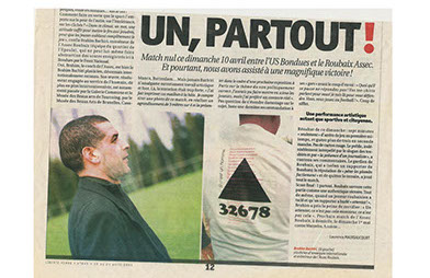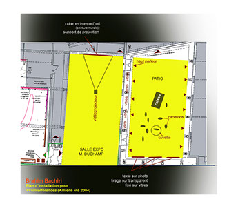 De plus en plus, en e et, des murs de la honte se montent malheureusement un peu partout sur le globe entre les territoires des pays qui se sont enrichis et s’enrichissent chaque jour davantage, et ceux qui survivent, encore à notre ère, parfois dans les pires misères... Au moyen de dispositifs plastiques à vocation critique, toujours aussi pertinents et puissants les uns que les autres, Brahim Bachiri travaille en e et à indexer les frontières qu’on ne cesse de dresser entre les populations jusqu’au sein même de certains pays de l’Europe qui se vantent d’être les pays des Droits de l’Homme et de toutes les libertés. L’artiste lutte pour la reconnaissance pleine et entière des populations issues de l’immigration quelle que soit leur contrée initiale, pour la considération de leur participation au développement et à l’enrichissement des territoires où elles vivent et ce à tous les niveaux, politique comme économique, social comme culturel...»