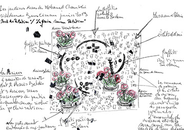 Fadma Kadouri expérimente lors de ce workshop une première respiration du projet Les Jardins Roses Mohamed Choukri à Benslimane ; un projet à travers lequel l’artiste souhaite éprouver, exprimer et transmettre une idée du jardin qui ne rappelle ni ne cherche à imiter des figures de jardins morphologiquement imprégnés de formes naturelles ; une démarche où il est question de cultiver des espaces poétiques.